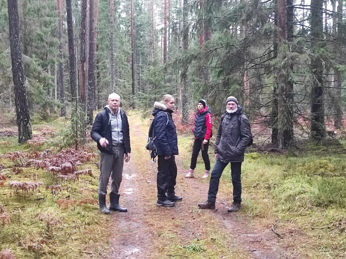 Žygeiviai susitiko su Šimonių girios eiguliu Eugenijumi Šukiu, kuris papasakojo apie girios istoriją, medelių sodinimo bei priežiūros darbus, kirtimus ir miško naudą žmogui.