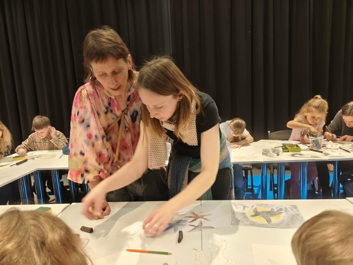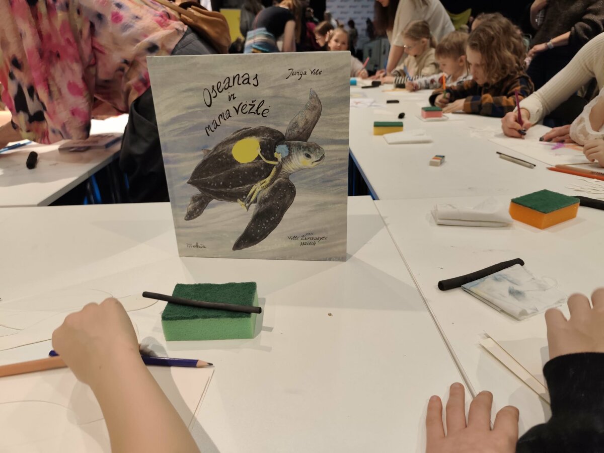 Kūrybinėse dirbtuvėse vaikus piešti spalvingas žuveles mokė Jurga Vilė ir iliustruotoja Viltė Žumbakytė.