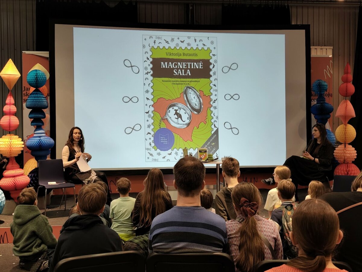 Apie šifro raktus ir nuotykius „Magnetinėje saloje“ pasakojo Viktorija Butautis, o vaikai entuziastingai rungėsi, kuris bus gudresnis.
