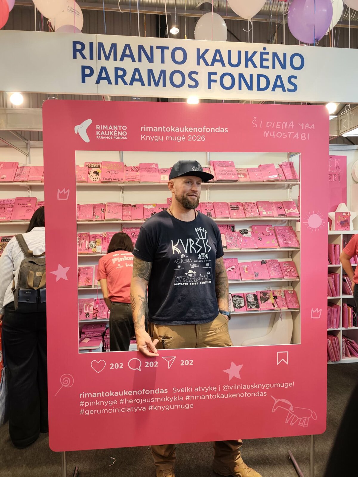 Tarp gausybės knygų sutiktos ir kitos žinomos asmenybės – Rimanto Kaukėno paramos fondo erdvėje bendravo krepšininkai Darjuš Lavrinovič ir Kšištof Lavrinovič, įspūdžiais dalijosi keliautojas Aurimas Mockus.
