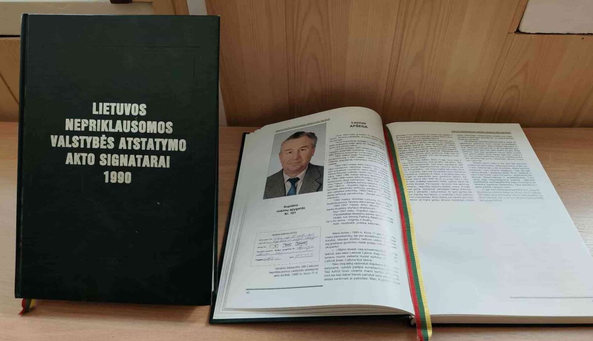 L. Apšega pasidalijo prisiminimais apie 1990-ųjų rinkimus į Lietuvos Aukščiausiąją Tarybą ir istorinį Nepriklausomybės Akto pasirašymą. Jis parodė mokiniams išsaugotus dokumentus bei relikvijas: Deputato pažymėjimą, balsavimo kortelę, parkerį, kuriuo pasirašė aktą, pirmąjį nepriklausomos Lietuvos piliečio pasą.