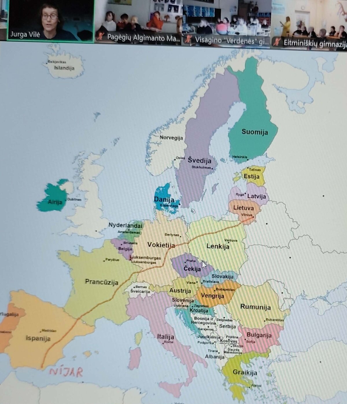 Gruodžio 4 d. pradinių klasių mokiniai dalyvavo „Vaikų knygų salos“ organizuotoje nuotolinėje pamokoje ir susitikime su rašytoja Jurga Vile. Pamoka tapo ne tik literatūros, bet ir geografijos bei biologijos kelione – rašytoja vaikus nukėlė į šiltuosius kraštus, į mažą Nijar kaimelį prie Viduržemio jūros, kuriame ji su savo šeima gyveno net dešimtmetį.