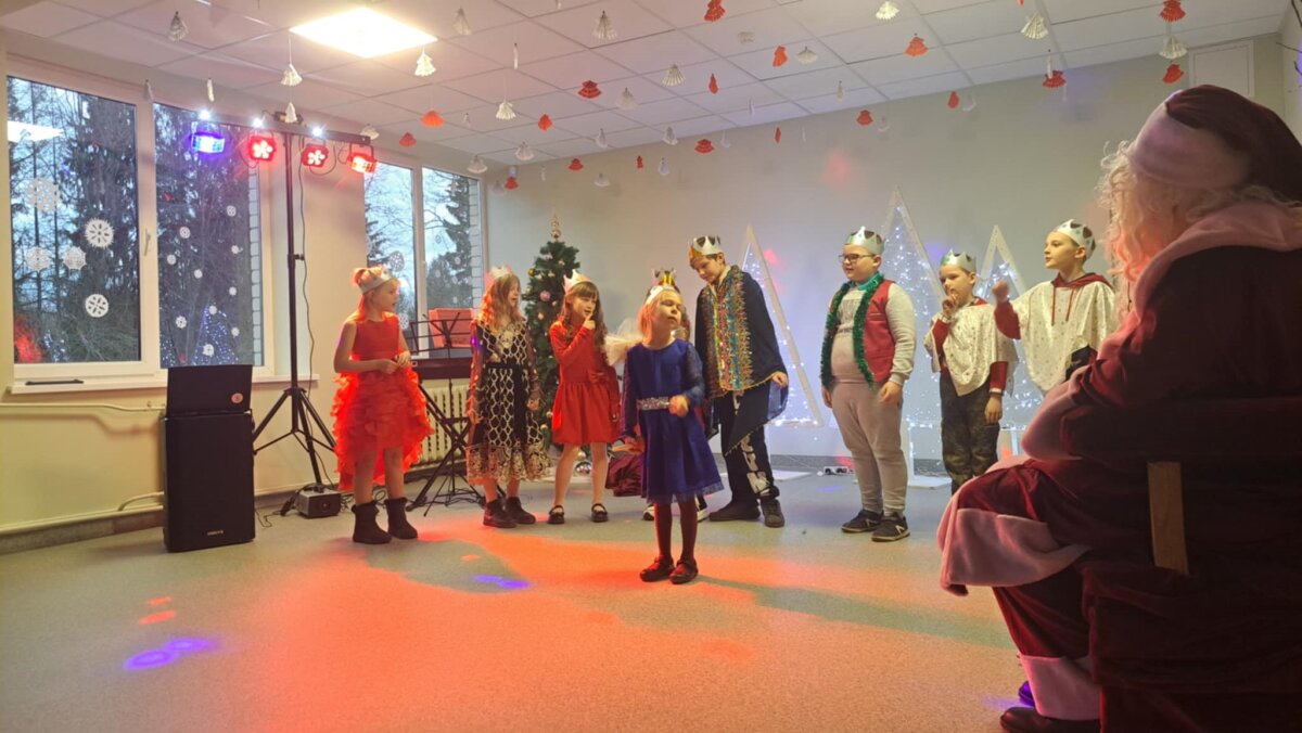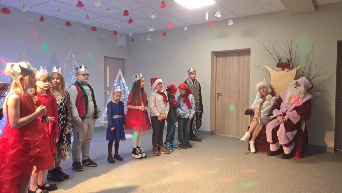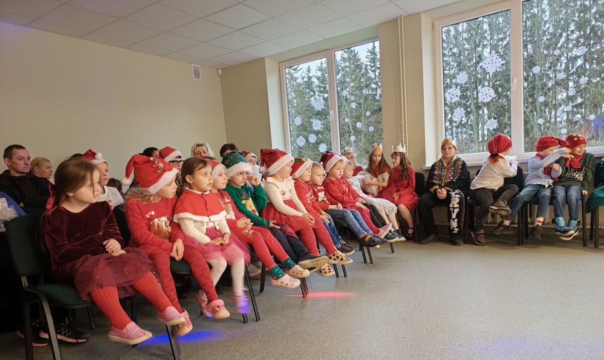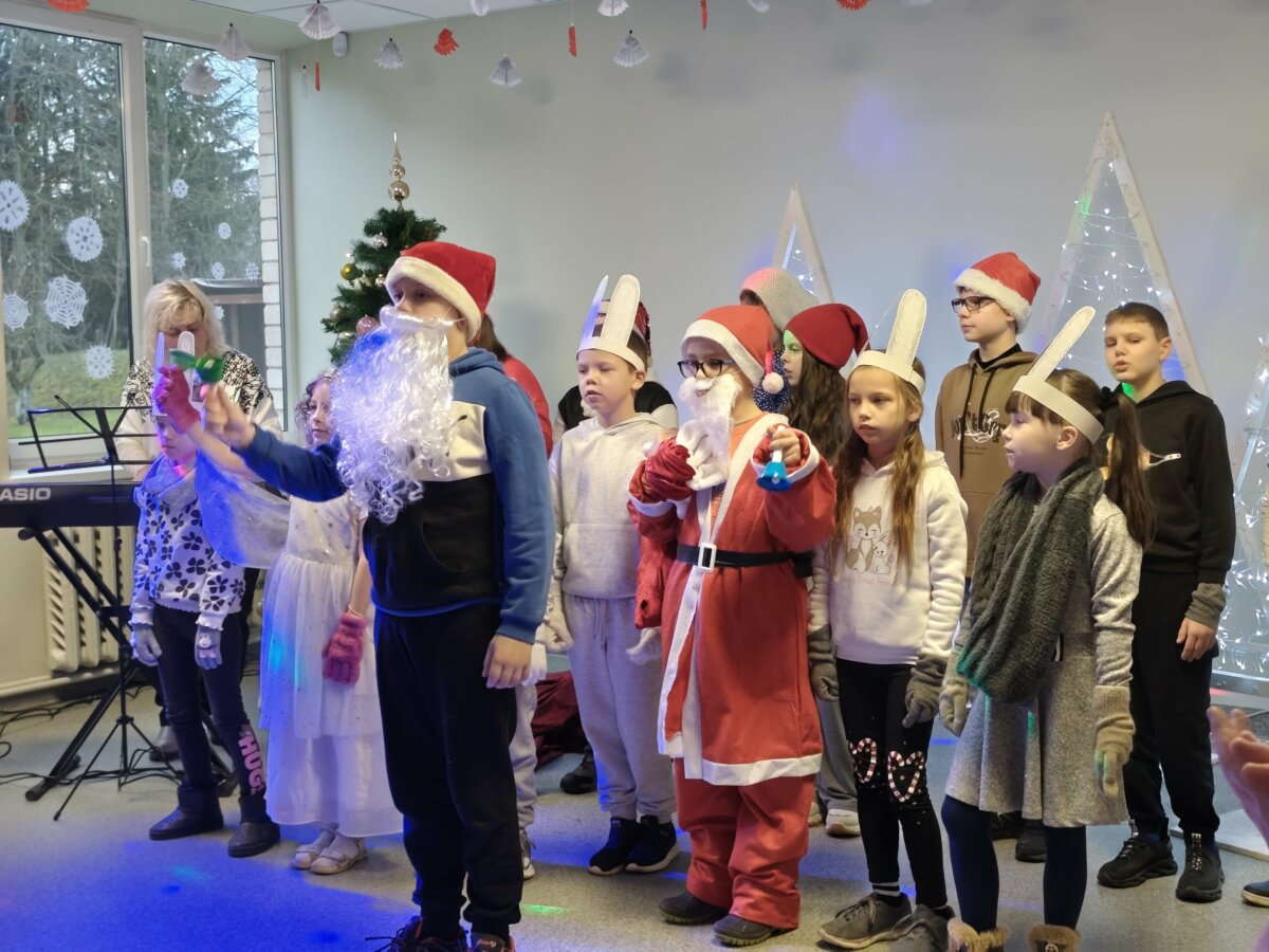 Dainavimo ir muzikos būrelius lankančių vaikų atliekami kūriniai nukėlė žiūrovus į linksmos ir nuotaikingos muzikos pasaulį. Šventinę programą užbaigė antrokų pasirodymas – ilgaausiai kiškiai, Žiemos gražuolė ir mažasis Kalėdų senelis deklamavo šventinius posmus bei perdavė žodį tikrajam Kalėdų seneliui ir Snieguolei.
