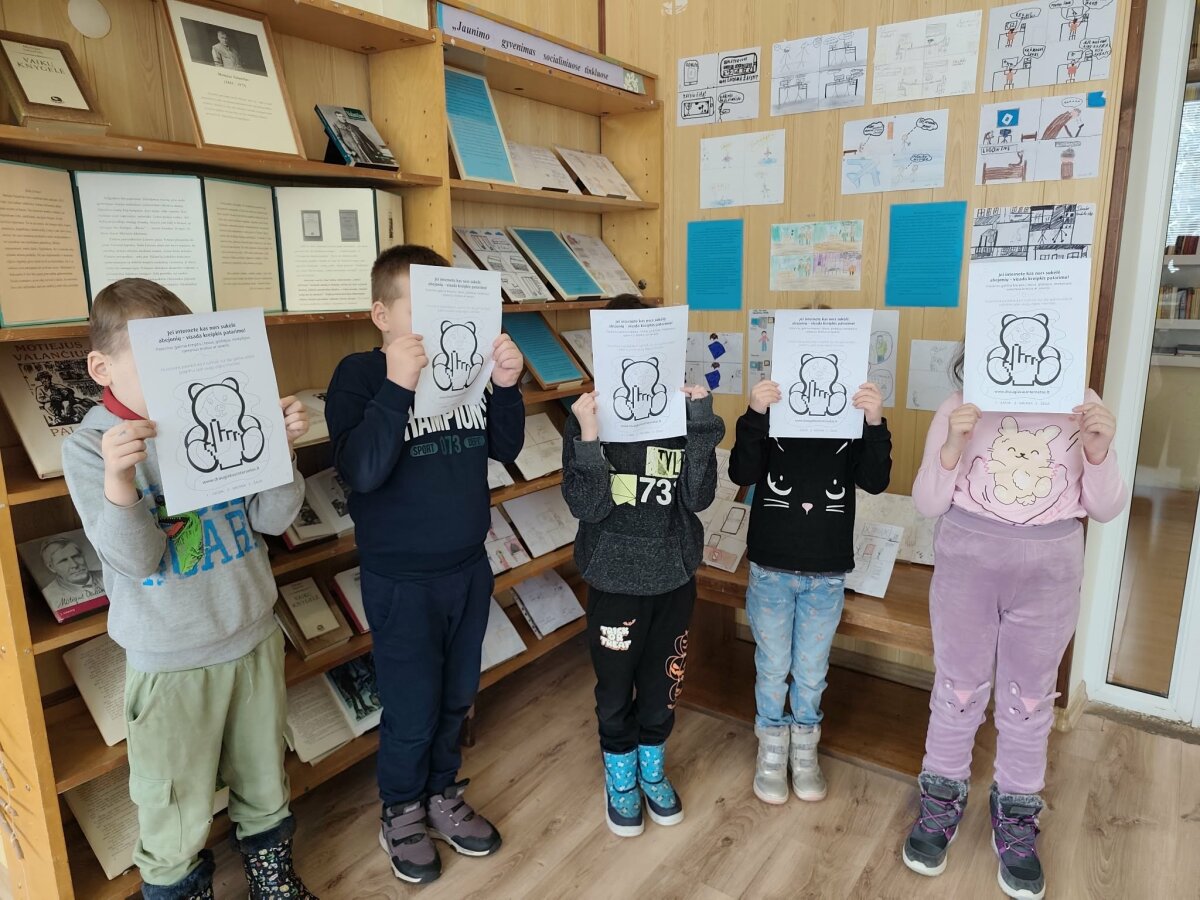 Pamokų pabaigoje jaunesnieji mokiniai atminimui gavo interneto svetainės www.draugiskasinternetas.lt simbolį – meškutį, o vyresnieji – atsakingo naudojimosi internetu ir išmaniaisiais įrenginiais taisyklių atmintinę, kad žinotų, kaip saugiai ir atsakingai elgtis skaitmeninėje erdvėje.